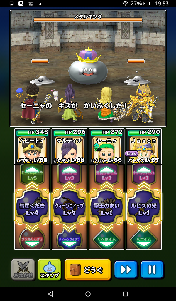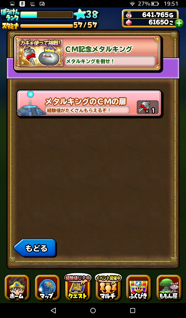 スタミナ消費1、推奨レベル1で、普段のはぐメタ、メタキンよりHPが少ない設定でした。