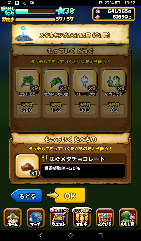 はぐメタチョコレートを食べて経験値50%アップしましたよ。