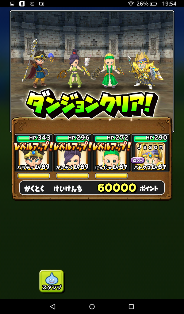 獲得経験値60000!ってことは、はぐメタチョコレートを食べないと40000だったのかな。